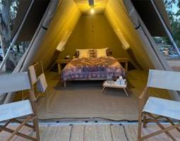 There are 20 tents in total, 15 with queen beds and five with twin beds. The tents sleep up to 40 people.